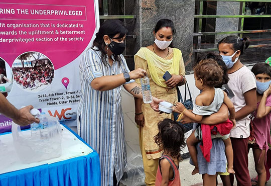 At the outset of post effect of Pandemic COVID -19 Ria Foundation has started to provide freshly cooked meal as well as raw food materials to the needy person of the community under the banner of Mission Nutrition Flagship Programme . As a part of Noida charity served education and cooked meals to needy one in sector -4 Noida & Sector 122 Noida . The beneficiaries of this progarmme were around 500 which comprises of 250 street children , 150 construction site worker , 100 daily wages labour , 75 migrant workers . The average cost of each cooked meal is approximately Rs 30 /- each . Ria foundation appeal everyone to please come foreword and support foundation for this noble cause and make our India Hunger free . The preparation of food & every arrangement was properly as per guidelines and completely hygienic . This progarme was sponsored by Akshyapatra . Looking for everyone support and blessings . With Regards , Ms Nirmala - Project Manager
