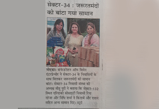 दिनांक 8.09.21 को अध्यापक दिवस पर कंफेडरेशन ऑफ़ विमेन एंटरप्रेन्योर (COWE) की अध्यक्ष श्रीमती मीतू पुरी निवासी सेक्टर 34 ए ब्लॉक एवं महासचिव रिया रहेजा निवासी नोएडा एल्डिको सेक्टर 132 व श्रीमती निधि शर्मा द्वारा गरीबों में किताबें वह राशन TENOTT 3D WALLS व रिया फाउंडेशन के सहयोग से बांटे गएटे गए