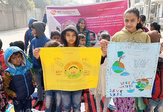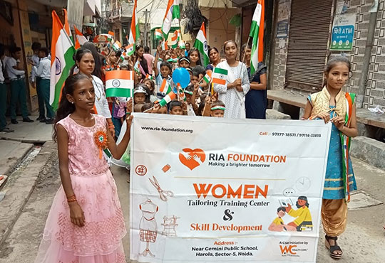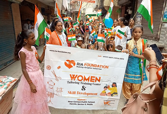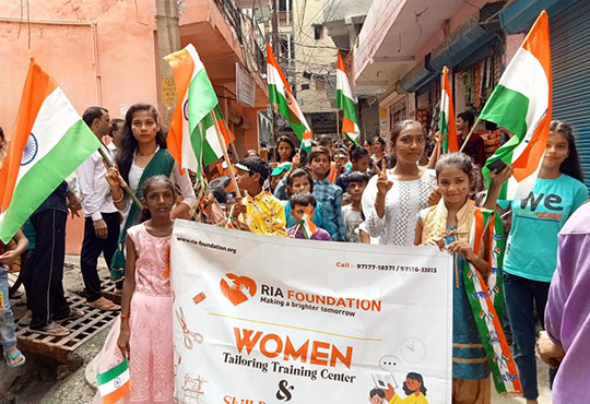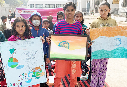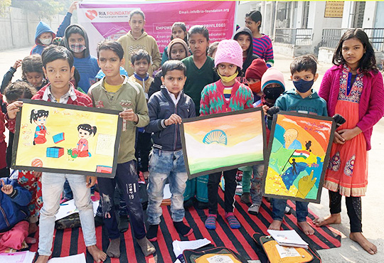 On 26th of January, Ria Foundation celebrated Republic Day with children at Janta Flats, Noida Sector–122, and also held a drawing competition for children on the themes of "Save The Girl Child" and "Tiranga."