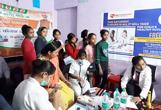 Ria Foundation organised a free health-checkup camp in Harola Centre sponsored by Kailash Hospital, Noida. All tests with medicines were provided to about 200 beneficiaries under the supervision of Dr Sameeksha Chaudhari & the team.