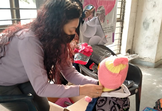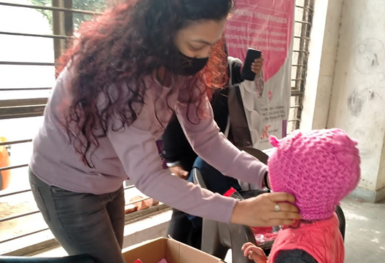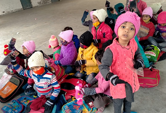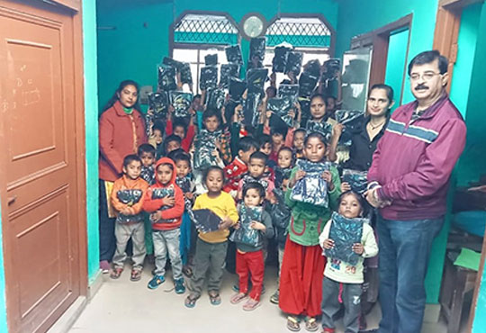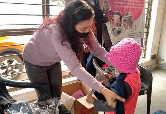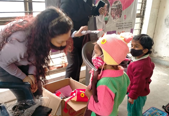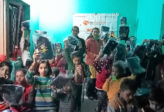 Ria Foundation has distributed winter clothes like gloves, socks, sweaters and woolen caps to 50 children at Janta Flat, Noida, Sector-122, Sponsored By - Pallavi Ji