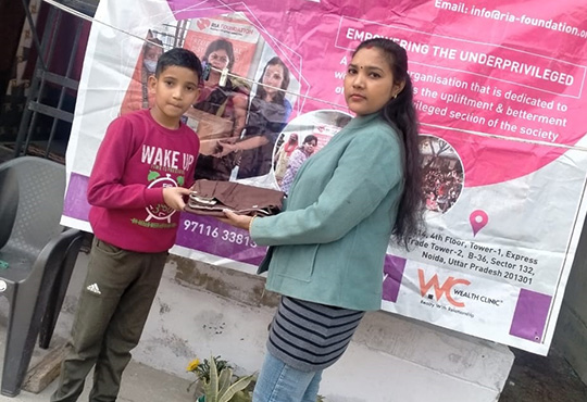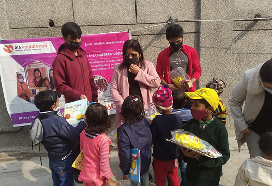 RIA FOUNDATION and team have distributed new clothes to many needful children on 14, Dec 2021 at NOIDA, Sector 122.