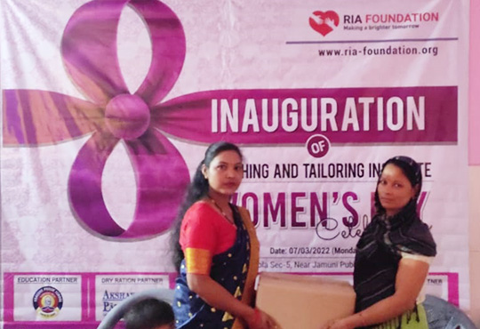 The grand inauguration of 'Stitching & Tailoring Institute' was organised by RIA FOUNDATION and Sponsored by multiple partners like- WEALTH CLINIC, ABALONE PUBLIC SCHOOL, AKSHAYA PATRA, GUPTA INDUSTRIES, and CHANGE THE SCENE FOUNDATION, on 7th March at Harola, Sector-5, Noida in celebration of Women's Day and attended by honourable chief guests- Stuti Raheja, Shushma Nishad, and Pooja Tiwari.