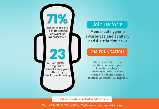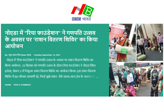 In this lockdown, we raised a helping hand & our volunteers distributed food to poor families in Sector 4, Noida.Ria Foundation organized an awareness drive on menstrual hygiene and free sanitary pad distribution drive on 19th of September in Mewala Village, Moradabad.In this lockdown, we raised a helping hand & our volunteers distributed food to poor families in Sector 4, Noida.